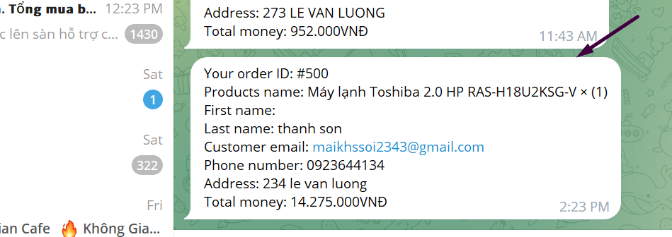 Bước 2.2 Thiết lập gửi thông báo đơn hàng qua Telegram